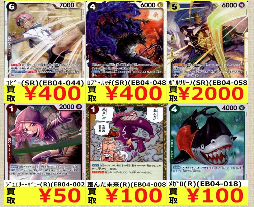 今回は、前回の記事でもお伝えしたようにSRゾロ/SRボルサリーノが高額買取中のため「バラパックでも元値回収できる確率が高い」のでエッグヘッドクライシス(EB-04) ... -