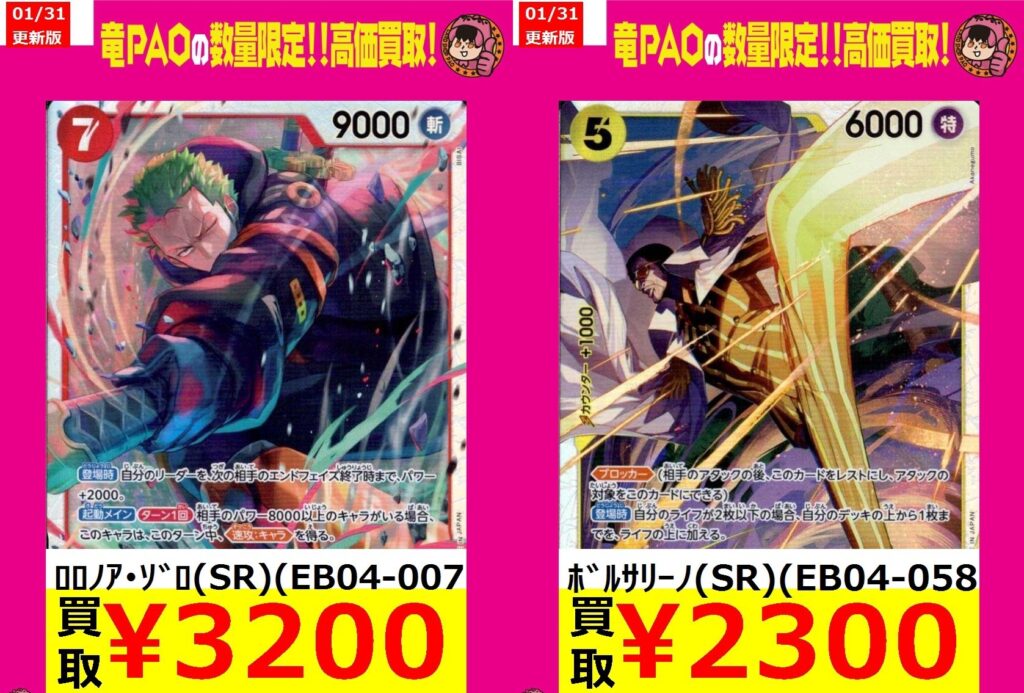 ✔ SRゾロ・SRボルサリーノが高額=今は「買い」